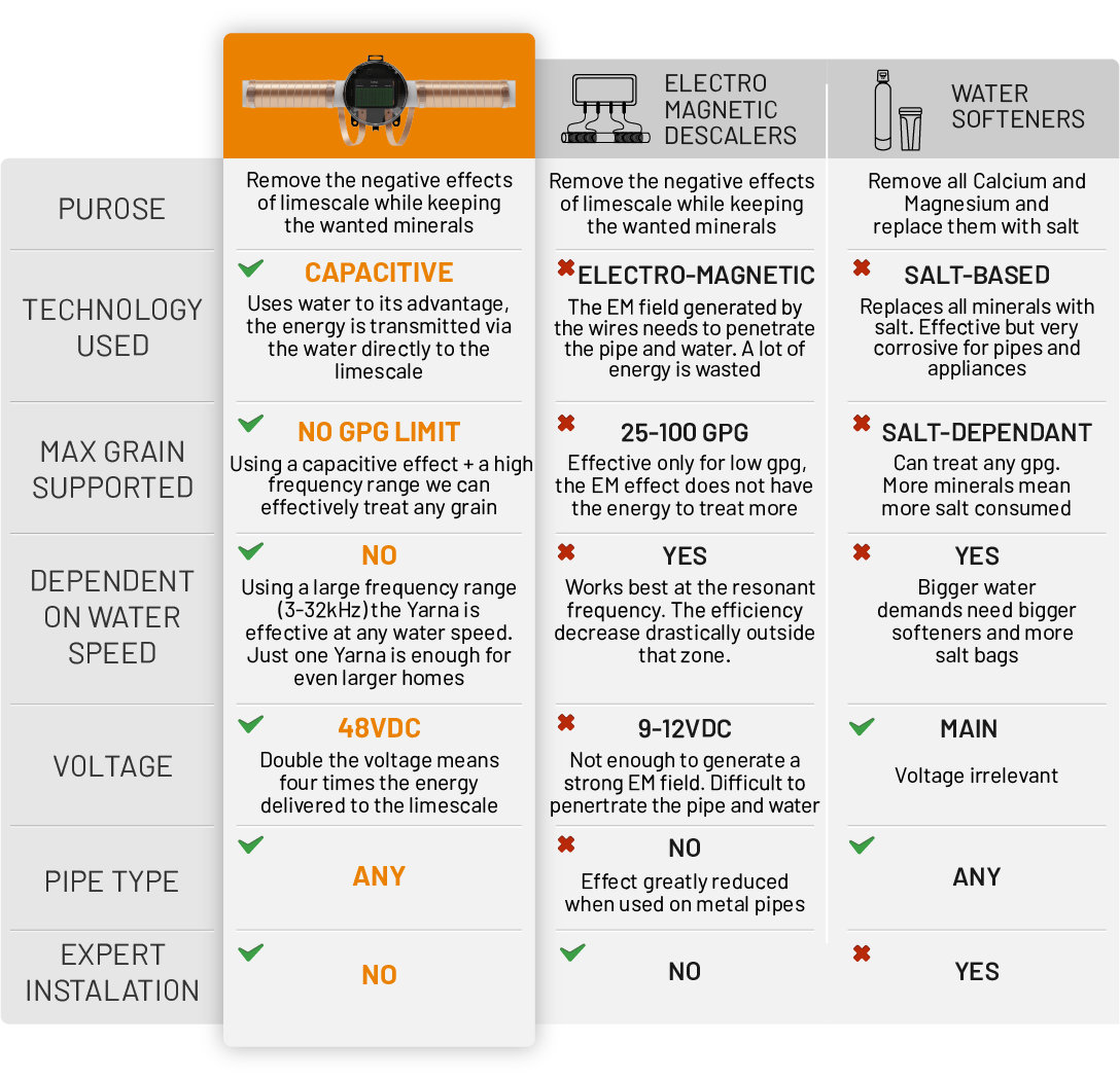 NoUsing a large frequency range (3-32kHz) the Yarna is effective at any water speed. Just one Yarna is enough for even larger homes |