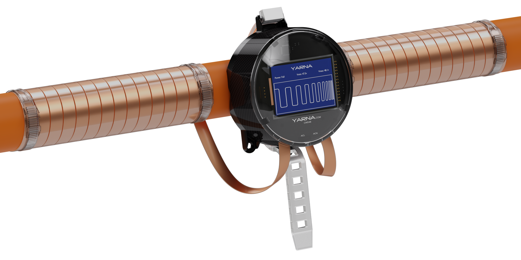 The YARNA CWD48 treats the water with electric impulses which are generated in the electronic unit and are controlled by a computerized micro-chip. The signal-frequencies are transmitted via the ULTRA FLAT IMPULSE BANDSTM that are wrapped around the pipe.